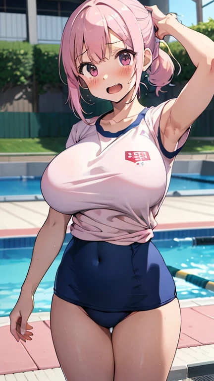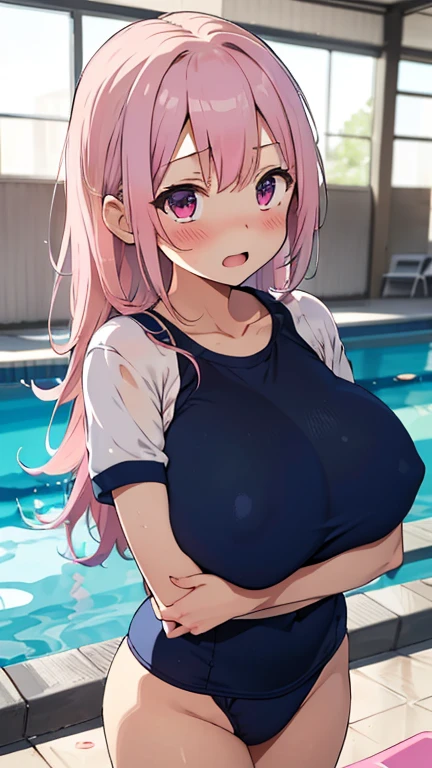 (gym uniform:1.1),(short sleeve),break,(navy blue school swimsuit:1.2),
